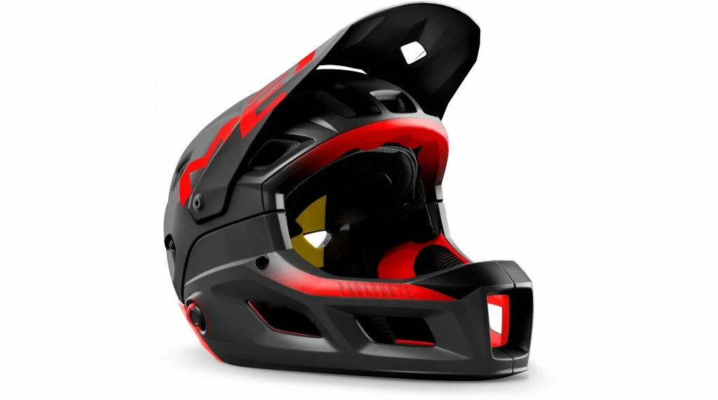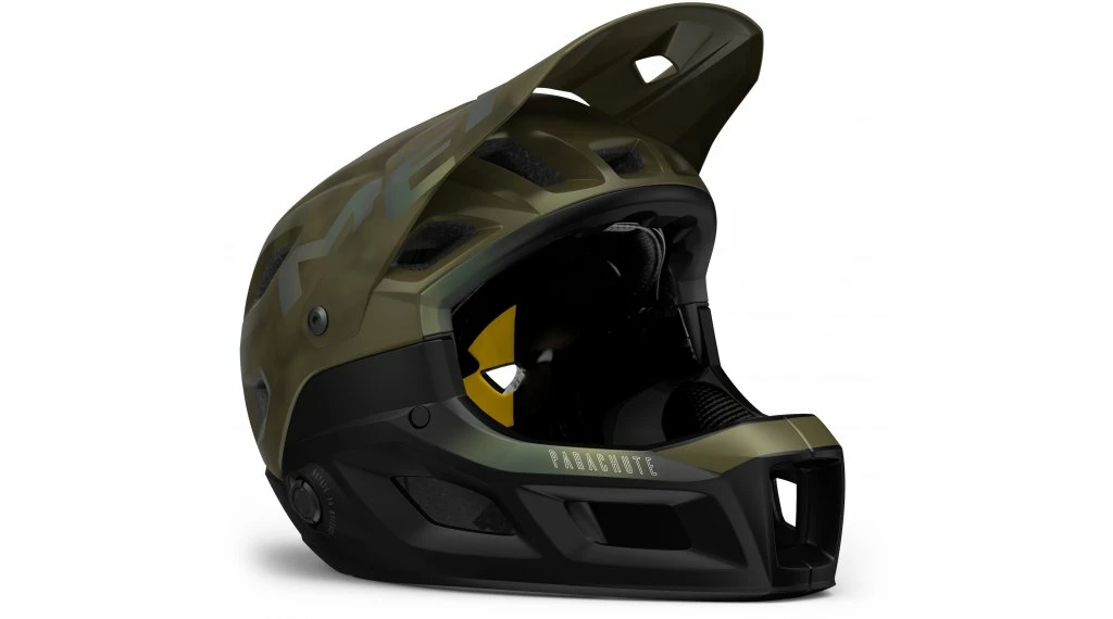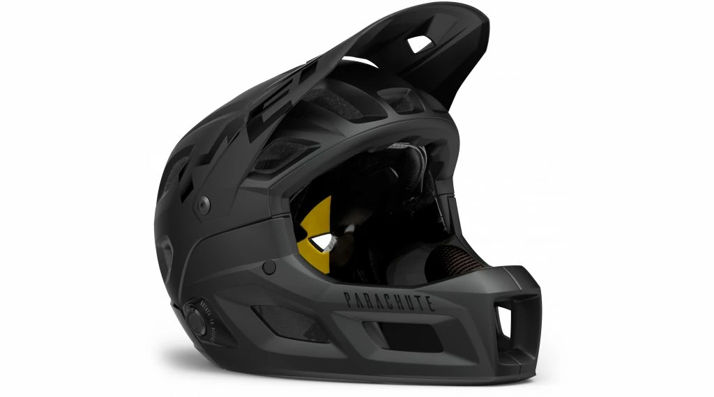 Casque de vélo de montagne convertible pour All-Mountain, Enduro et E-MTB. Avec le Magnetic Chinbar Release (MCR), le casque intégral peut être transformé en demi-coque et vice versa en un rien de temps. Le système de fermeture MCR de Parachute a été développé en collaboration avec FIDLOCK®.