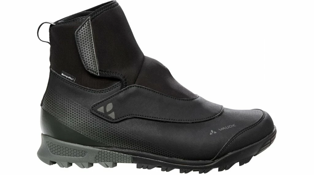 La chaussure de vélo d’hiver mi-haute protège contre la saleté et l’humidité grâce à la construction imperméable avec membrane Sympatex®; la doublure PrimaLoft® Eco offre une bonne isolation et garde vos pieds au chaud jusqu’à la cheville. La fermeture rapide Boa assure un habillage et un déshabillage confortables, et le réajustement est rapide et facile, même avec des gants. Au-dessus du laçage se trouve un rabat avec une fermeture éclair étanche pour protéger contre la saleté et les éclaboussures d’eau. La large bande Velcro à la cheville offre un soutien supplémentaire. Des éléments réfléchissants sont fixés dans la zone de l’arrière-pied ; la semelle antidérapante au profil All Mountain du Minaki Mid II STX est compatible avec les pédales à clic et offre une excellente adhérence et un confort de marche même dans des conditions hivernales. Le label VAUDE Green Shape est synonyme d’un produit écologique et fonctionnel fabriqué à partir de matériaux durables.